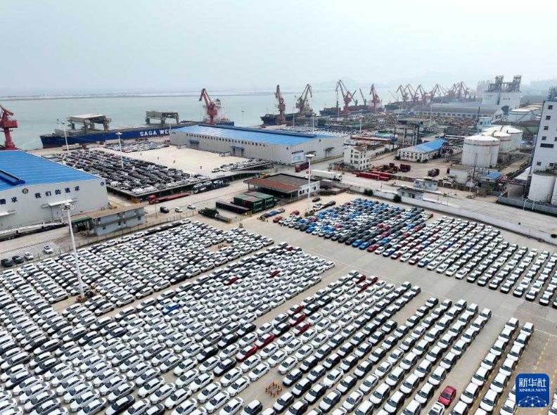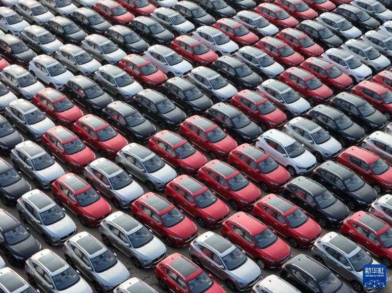 7月13日,在江蘇省連云港港東方港務(wù)分公司碼頭,大批出口車輛集港等待裝船(無人機照片)。